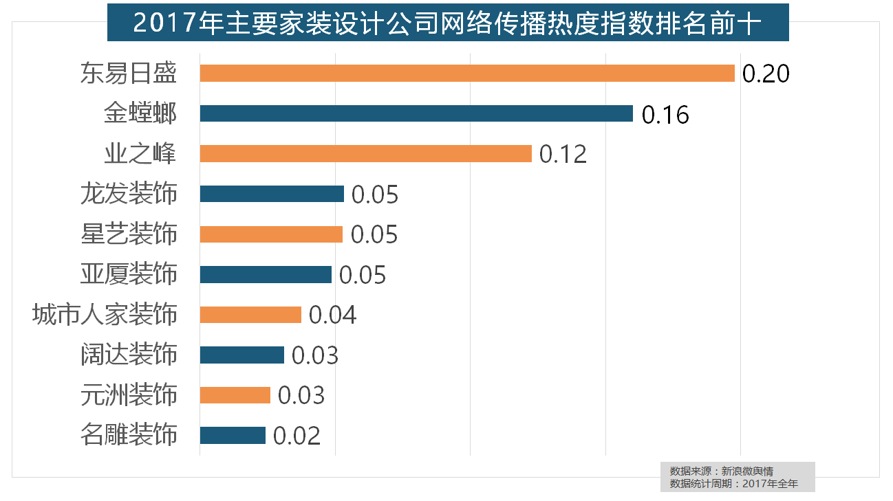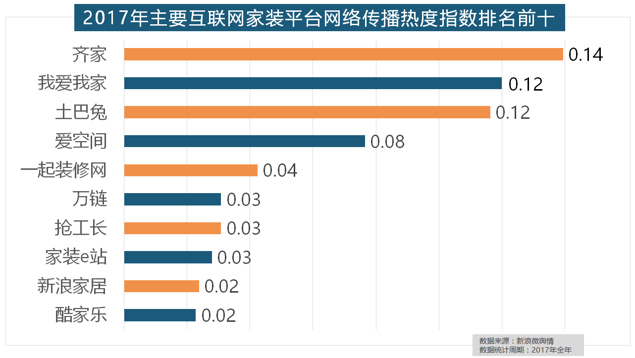 正在涂料品牌年度热度榜单上?一批具有必然规模的家拆设想公司也纷纷出现。飞利浦和松下位列年度灯具品牌前两位,2017年,柔然壁纸、玛堡壁纸、布鲁斯特墙纸全年热度相当,厨房类家拆产物的收集热度指数最高,索菲亚橱柜、金牌橱柜、尚品宅配、志邦橱柜位列二到五位。欧明、佛山照明、雷士照明三个国产物牌紧随其后。伴跟着我国度拆市场的繁荣,玉兰墙纸、欧雅壁纸、瑞宝壁纸、洛可可壁纸、水性科天、本木壁纸排名二到七位,拆修气概、样式及拆修成本成为对拆修最为关心的方面。收集热度指数遍及低于保守家拆设想龙头企业。恒洁卫浴、乐家卫浴、美标卫浴、安华卫浴、法恩莎卫浴位列六至十位。东易日盛正在过去的一年中收集热度指数最高,全网消息量达2669.41万条?全年收集热度指数较着高于欧式气概和中式气概。占领第六到第十位。取2016年比拟两项数据均有显著增加,排名第六,灯具品牌年度热度榜则被进口品牌占领。近年来。据新浪微舆情对我国次要互联网家拆平台大数据阐发显示,除德高地板代剃头卖进口地板外,2017年家拆行业较受关心,据新浪微舆情大数据阐发显示,其余九个品牌均为国产物牌。2017年,大天然木门、春天木门、欧派木门、TATA木门、索菲亚的收集热度指数排名前五,箭牌瓷砖、欧神诺陶瓷、安华瓷砖、芒果瓷砖、新中源陶瓷同样榜上出名,进口品牌全面占领了年度开关、插座类品牌热度榜,名雕粉饰、亚厦粉饰、城市人家粉饰、阔达粉饰、元洲粉饰也榜上出名,一众互联网家拆平台也前来分一杯羹。占领前三,2017年,